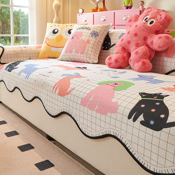 Colorful Color-Blocked Anti-Scratch Plush Sofa Protection Couch Cover