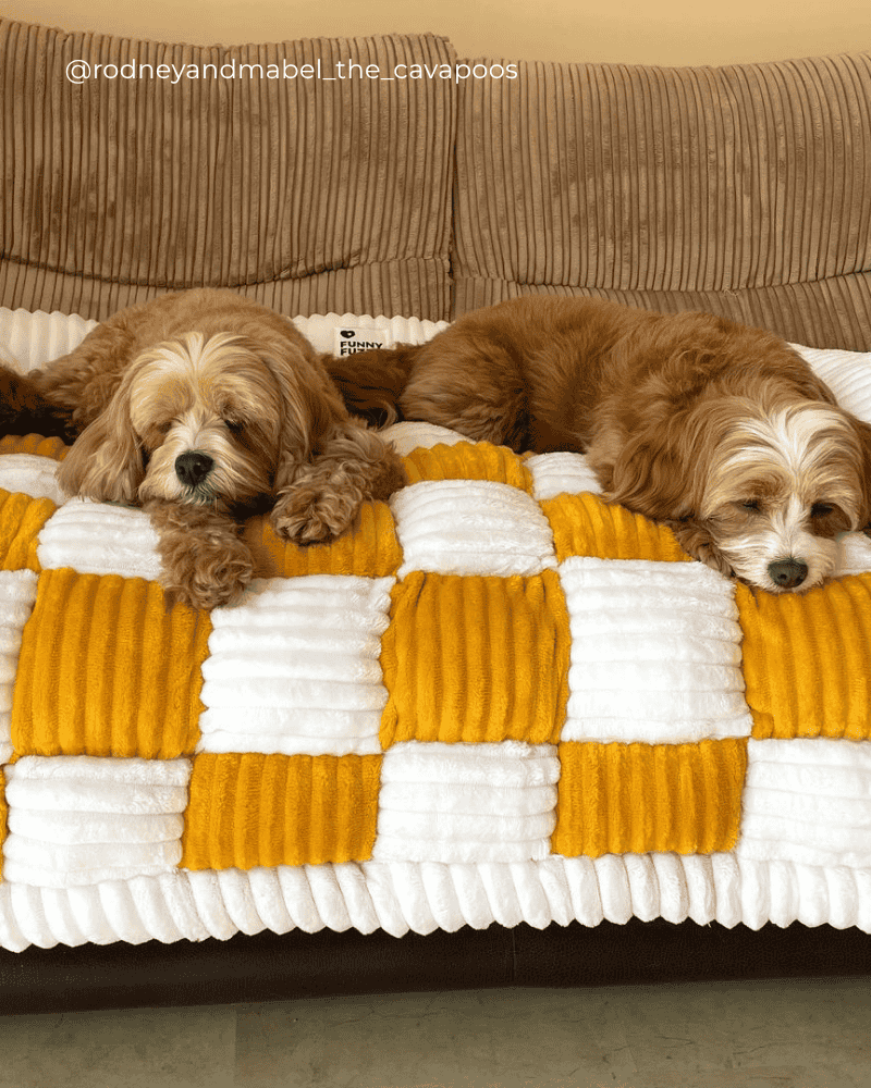 Cream-colored Large Plaid Square Fuzzy Pet Dog Mat Bed Couch Cover