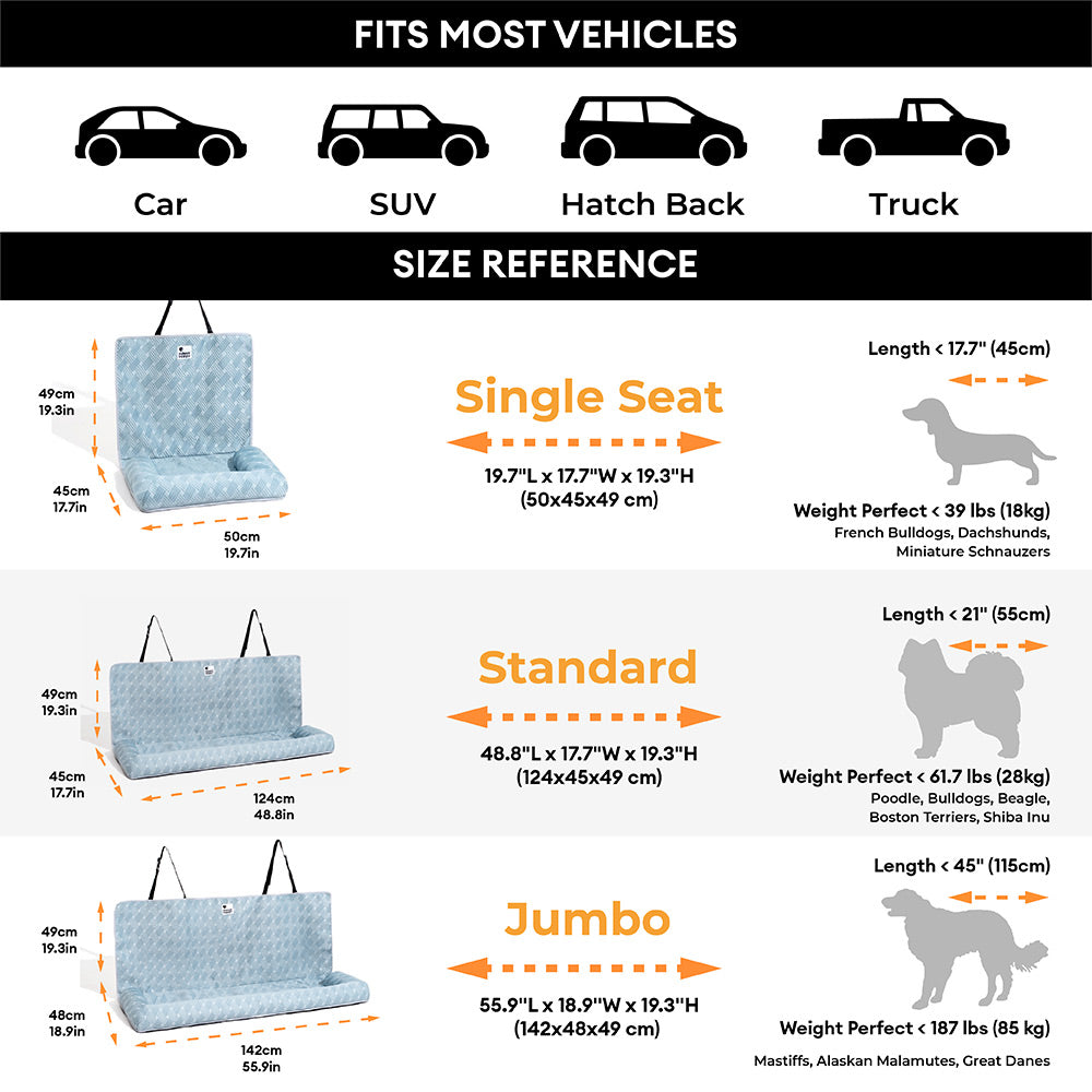Instant Cooling Comfort: Crafted with advanced cooling fabric, this bed absorbs heat and wicks away moisture, keeping your pup cool and sweat-free even on scorching days. Say goodbye to restless, overheated car rides!