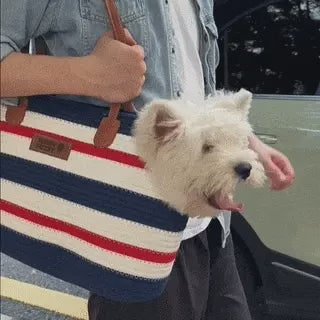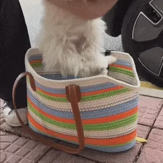 Handmade Lightweight Cotton Woven Beach Bag Pet Carrier- Summer Vacation