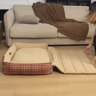 Large Washable Vintage Tartan Folding Blanket Dog Beds - Avocuddle