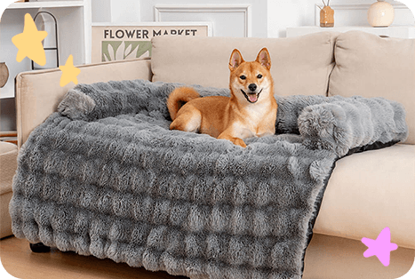 Selected pet friendly couch covers, bedding sheet, and rugs.