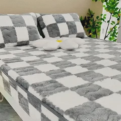 Cubierta de colchón de lámina ajustada a cuadros de terciopelo de leche