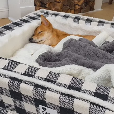 Lit apaisant anti-anxiété pour chien confortable en tartan classique festif