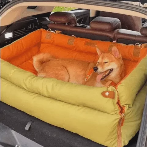 Grand lit rehausseur de siège d'auto pour chien en simili cuir de luxe - Urban Voyager
