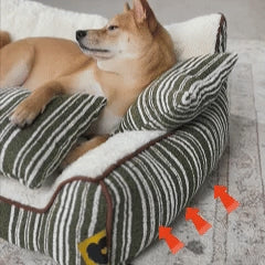 Plush Warm Stripe Orthopedic Dog & Cat Sofa Bed With Pillows- Grove Couch