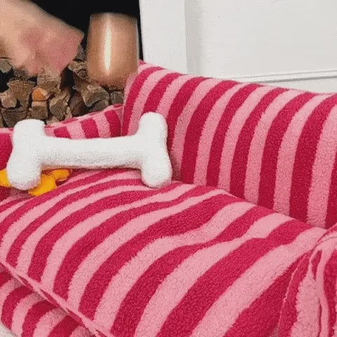 Canapé-lit rayé tendance en fausse laine d'agneau, Double couche pour chat
