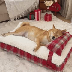 Vintage Plaid Plush Detachable Orthopedic Dog Bed with Pillow - Puppy Snug