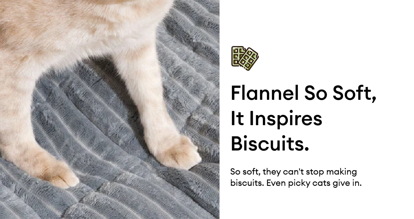 Your cuttie is nestled on the Lazy Soft Flannel Mat, eyes half-closed, paws gently moving…She’s making biscuits — lost in softness so warm and cozy, it feels like a cloud of fresh dough.