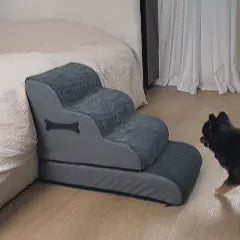 - Modular 2-in-1 Setup: Use it stacked as a 4-step stair for high beds and sofas, or unstack to create a cozy ramp or pet mat on the floor. Perfectly adaptable to your pet’s changing needs and your home layout.