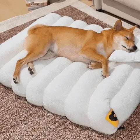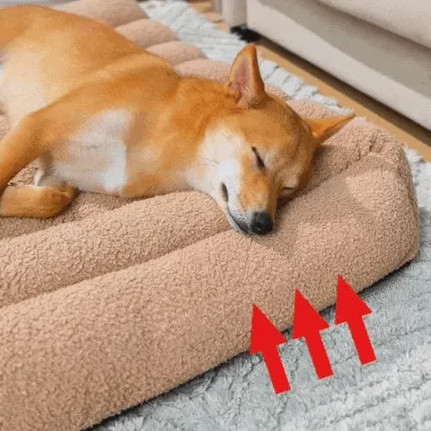 - Bleiben Sie warm und sicher: Ein cremefarbenes, gemütliches Schlafsofa mit Teddyfleece-Bezug bietet Wärme und Isolierung und sorgt dafür, dass der Hund bequem und sicher sitzt. Das geschlossene Design oder die hohen Seiten können dem Hund außerdem ein Gefühl von Schutz vermitteln, was für sein Sicherheitsgefühl wichtig ist.